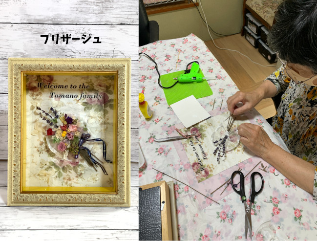 【ウエルカムボード】2020.09.26 2022年8月27日 最終更新日時 : 2025年11月26日 アスブリッジ早川 お住まいの地域で開催される作品展に出品する作品をお作りいただきました。 もちろん今日がプリザージュ初体験の方ですがとっても、思いっきりがよく迷いなく作り上げられました。 感想を尋ねると、集中できて楽しかったし出来栄えも大満足との事でした。 手ごたえを感じていただき私もうれしかったです。