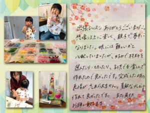 操作ミスでブログ記事消えてしまいました‥‥涙 年少さん4歳児のママからの出張レッスン依頼 保育園の担任の先生が結婚のため退職されるそうで娘ちゃんにプレゼントを作らせたいとの事材料すべて持参しお邪魔しました 準備の時から興 […]