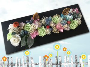 ご自分でドライフラワーを作成しお持ちいただいきましたリサイクル瓶を使ってお持ちいただいた花材を使ってハーバーリュームをつくられました 60回目のお誕生日にご主人様から花束をいただいたそうですはじめて花束を貰ったそうですそ […]