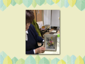 操作ミスでブログ記事消えてしまいました‥‥涙 再投稿 第一生命さんで出張ハーバリウムレッス(犬山市)20名の方にご参加いただき、好みの花材を選んでいただき思い思いの作品を作って頂きました。機会があったらまた是非お邪魔した […]